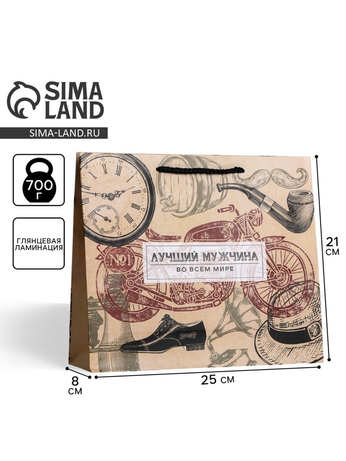 Пакет подарочный ламинированный, упаковка, «Лучшему мужчине во всем мире», ML 21 х 25 х 8 см