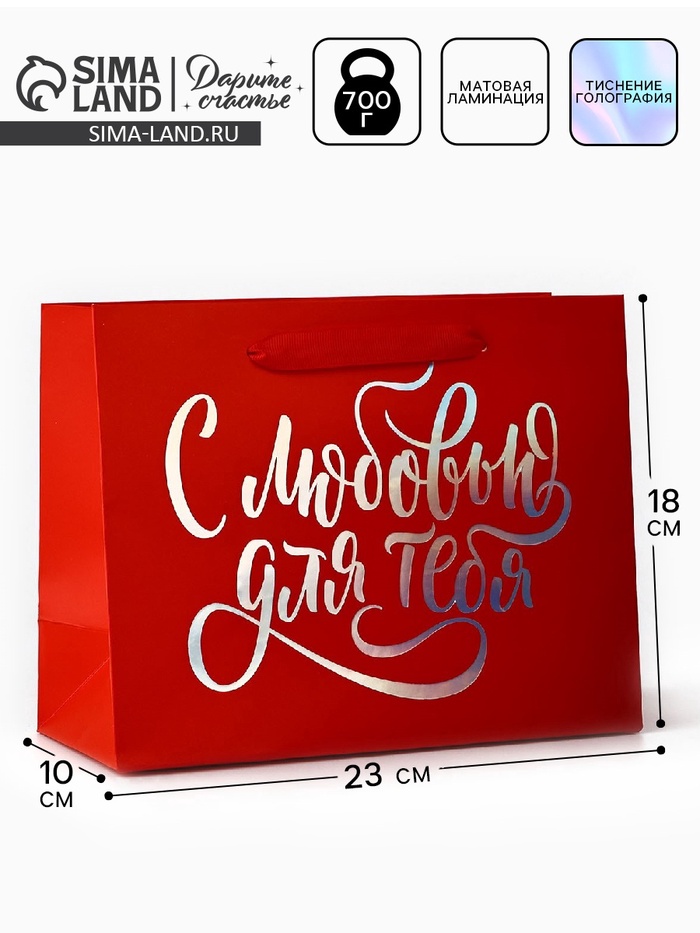 Пакет подарочный «С любовью для тебя», голография, MS 18 х 10 х 23 см