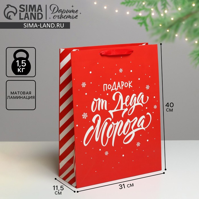 Пакет подарочный новогодний ламинированный «Подарок от Деда Мороза», L 31 х 40 х 11.5 см