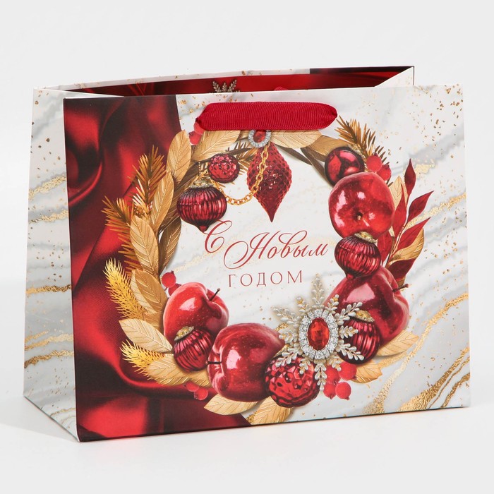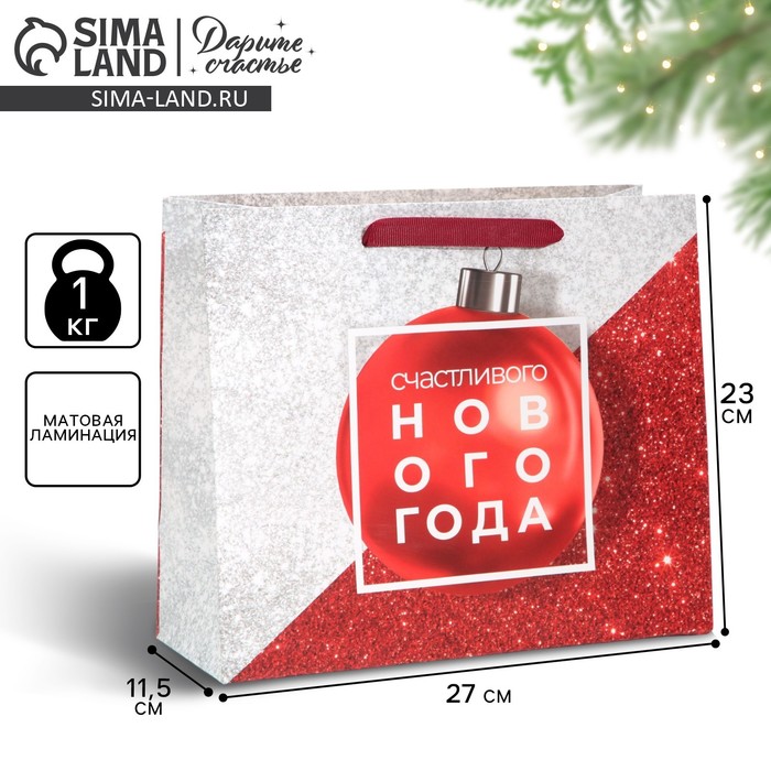 Пакет подарочный новогодний ламинированный «Счастливого нового года», ML 27×23×11.5 см