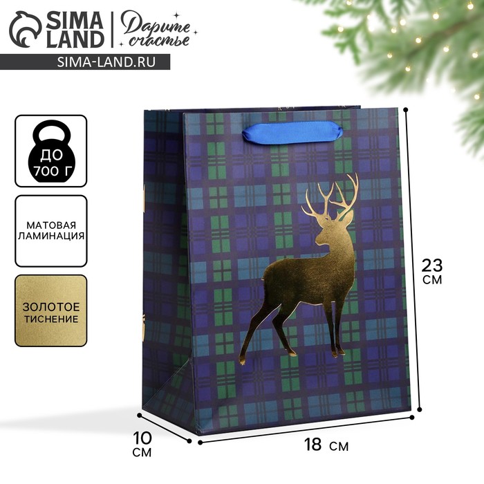 Пакет подарочный новогодний ламинированный «Стильный», MS 18 х 23 х 10 см