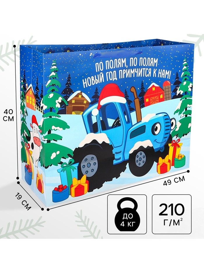 Пакет подарочный, 40х49х19 см, упаковка, Синий трактор