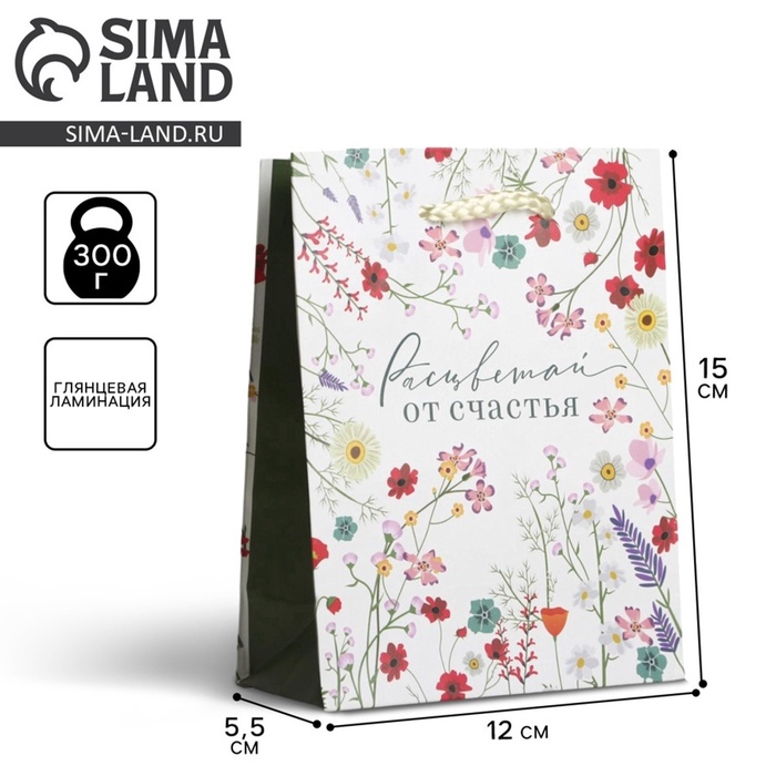 Пакет подарочный ламинированный, упаковка, «Расцветай от счастья», S 12 х 15 х 5.5 см