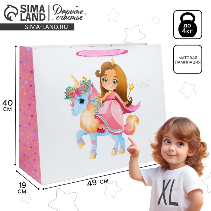 Пакет подарочный ламинированный, упаковка, «Принцесса», XL 49×40×19 см