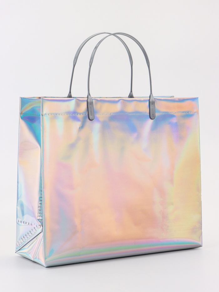 Пакет подарочный ПВХ, голография, серебро, пластиковая ручка, 26×22.5×10 см
