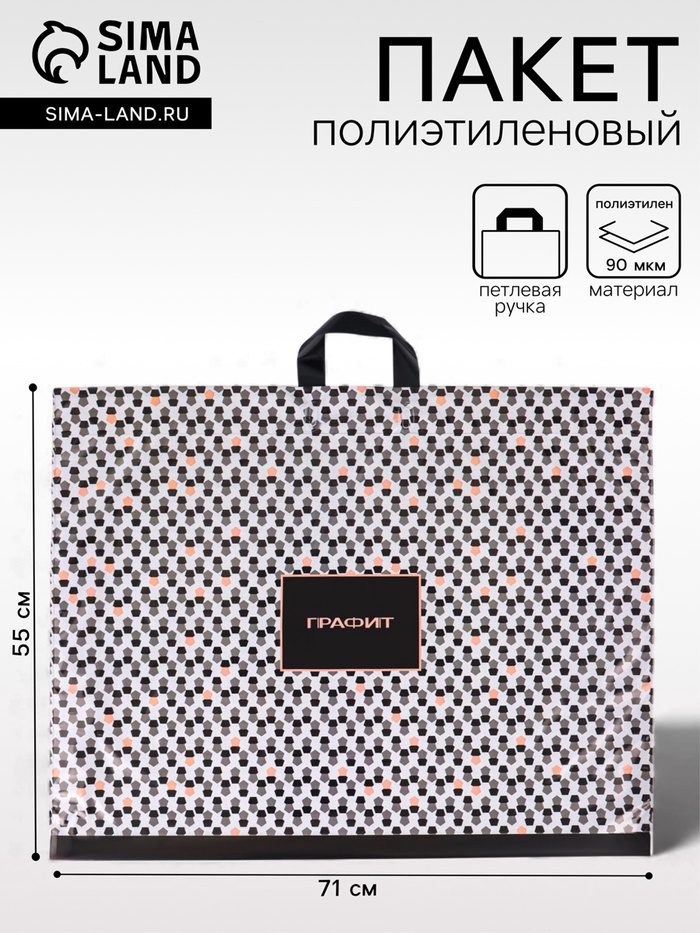 Пакет «Графит», полиэтиленовый с петлевой ручкой, 71×55 см, 90 мкм