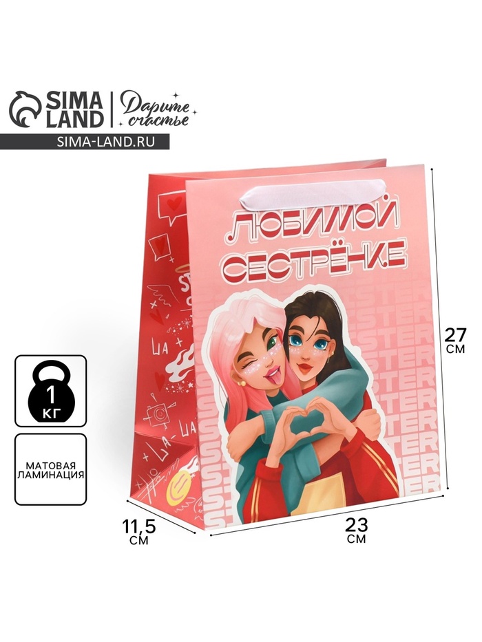 Пакет подарочный ламинированный, упаковка, «Любимой сестрёнке», ML 27 х 23 х 11.5 см