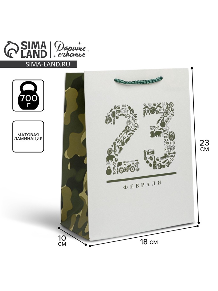 Пакет подарочный ламинированный, упаковка, «23 февраля», MS 18×23×10 см