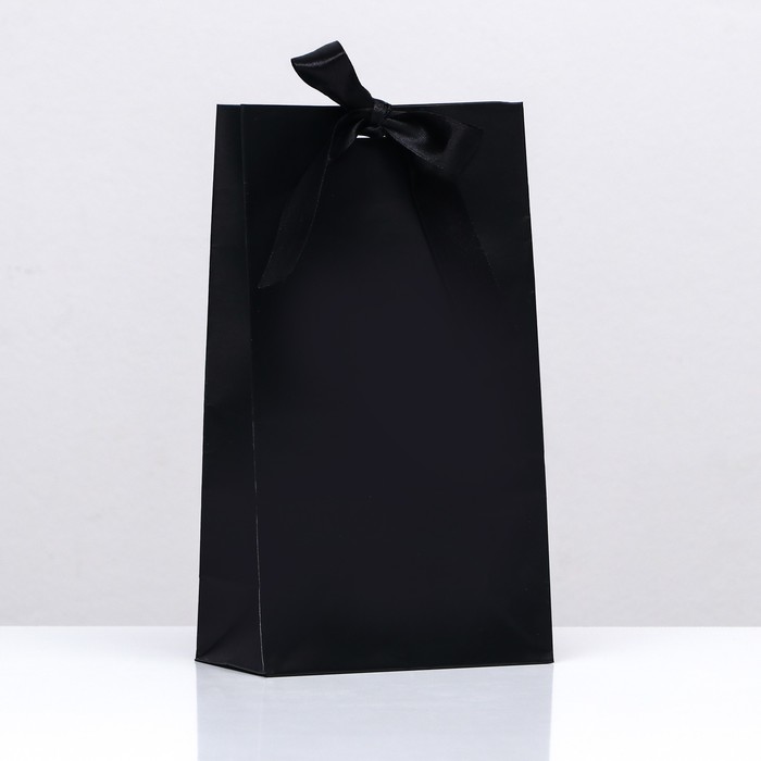 Пакет подарочный с лентой «Чёрный», ламинированный вертикальный, 13×23×7 см