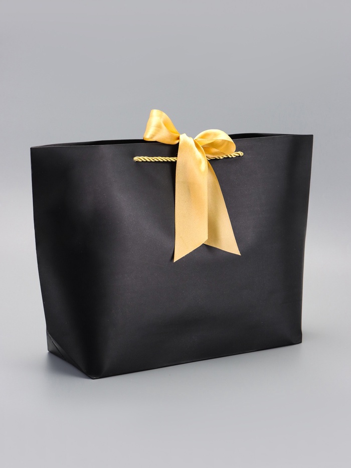 Пакет подарочный с лентой 30×27.5×12 см «Черный»