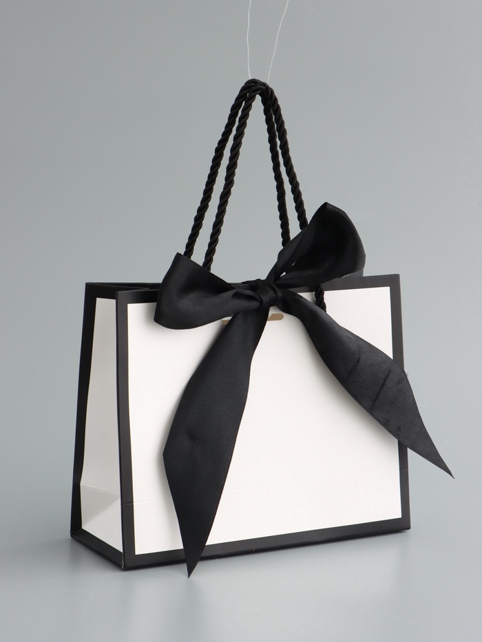 Пакет подарочный, белый, с бантом, 19 х 15 х 7 см