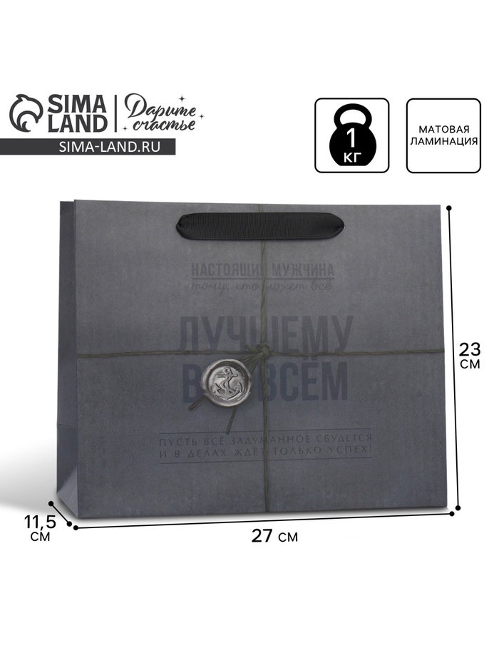 Пакет подарочный ламинированный, упаковка, «Лучшему во всём», ML 27 х 23 х 11.5 см