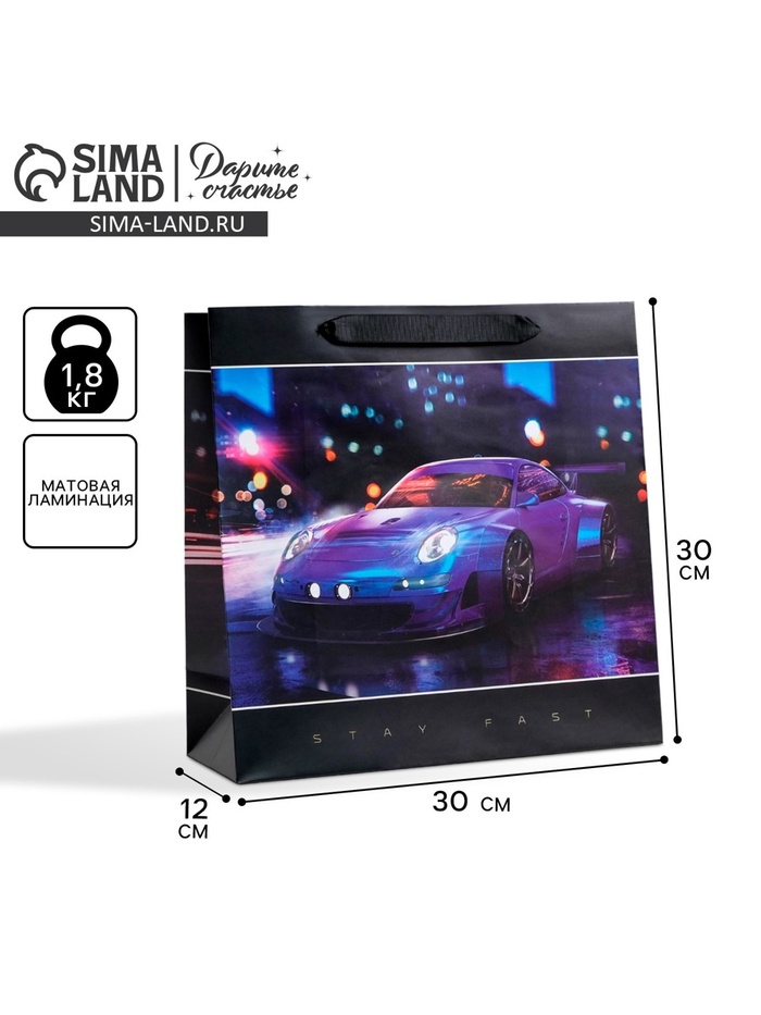 Пакет подарочный ламинированный квадратный, упаковка, Stay Fast, 30 х 30 х 12 см