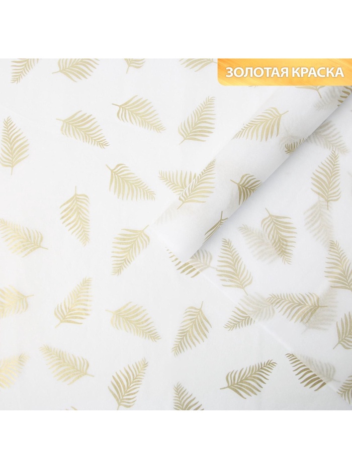 Бумага упаковочная тишью «Листья, золото», 50 х 70 см