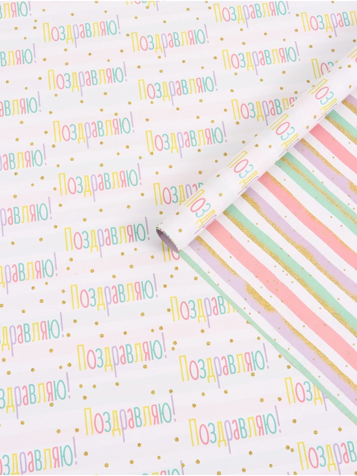Бумага глянцевая двухсторонняя «Поздравляю», 50 × 70 см