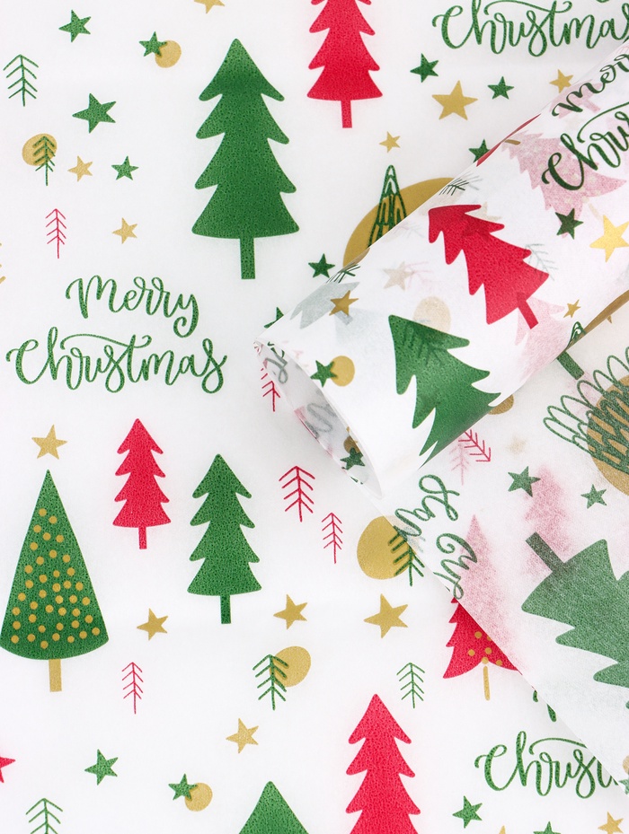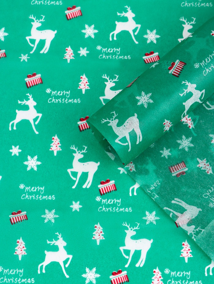 Бумага новогодняя упаковочная тишью «Рождество», зелёная, 50×66 см