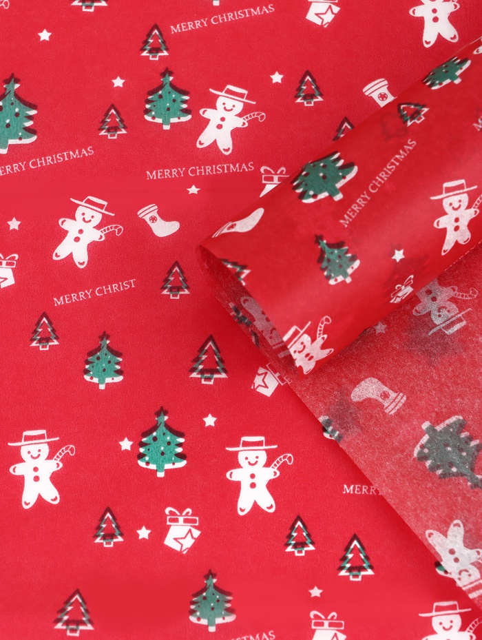 Бумага новогодняя упаковочная тишью «Пряничный человечек», красная, 50×66 см