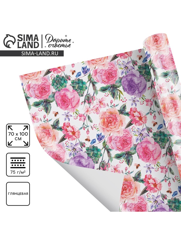 Бумага упаковочная глянцевая «Нежные цветы», 70×100 см