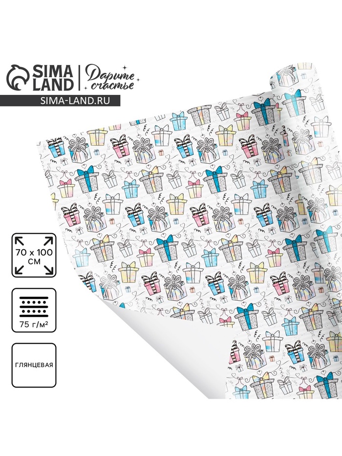 Бумага упаковочная глянцевая «Подарочки», 70×100 см