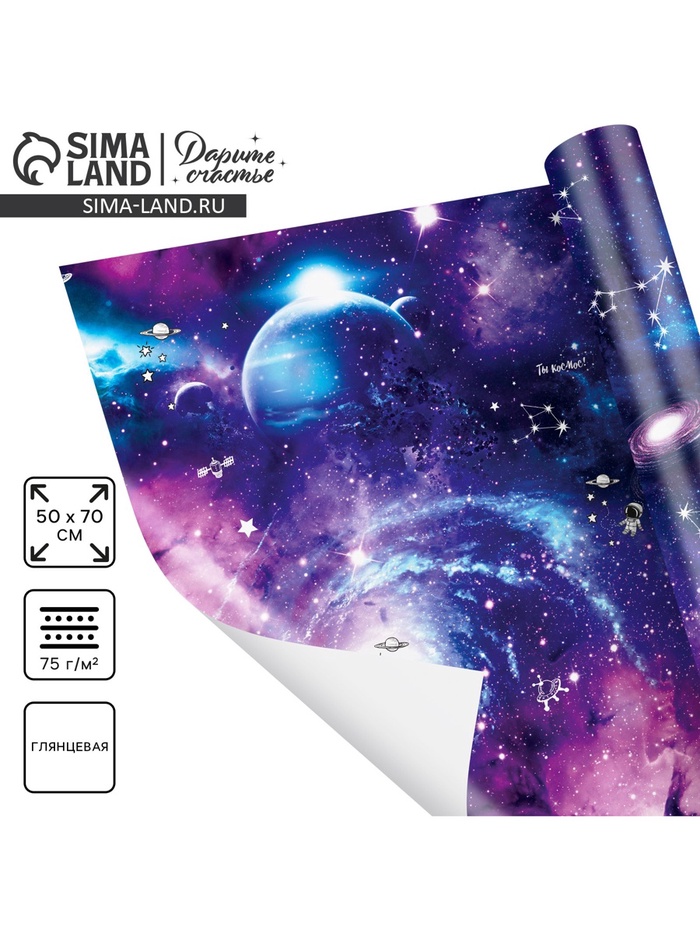 Бумага упаковочная глянцевая «Космос», 50×70 см