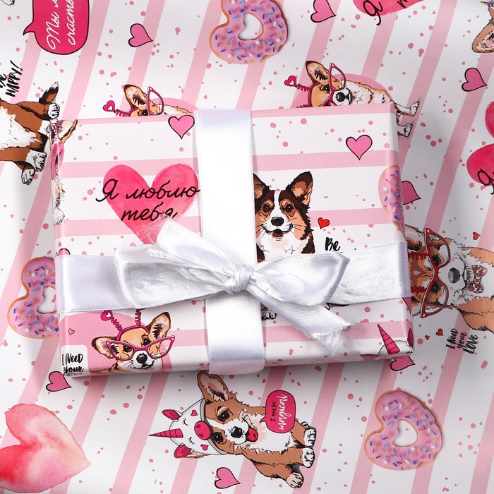 Бумага упаковочная глянцевая «Корги», 70×100 см,1 лист