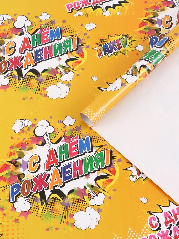 Бумага упаковочная глянцевая «С днём Рождения!», 50×70 см