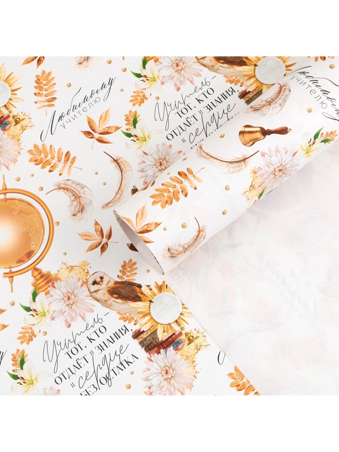 Бумага упаковочная глянцевая «Любимому учителю», 70×100 см