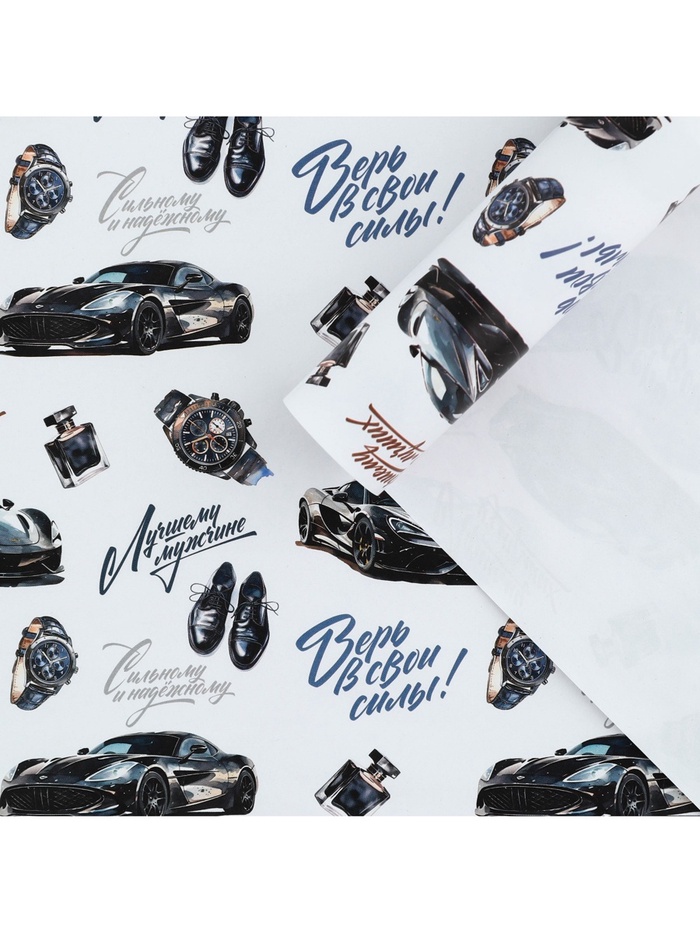 Бумага упаковочная глянцевая «Настоящему мужчине», 60×90 см
