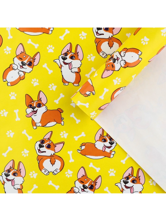 Бумага упаковочная глянцевая «Корги», 70×100 см