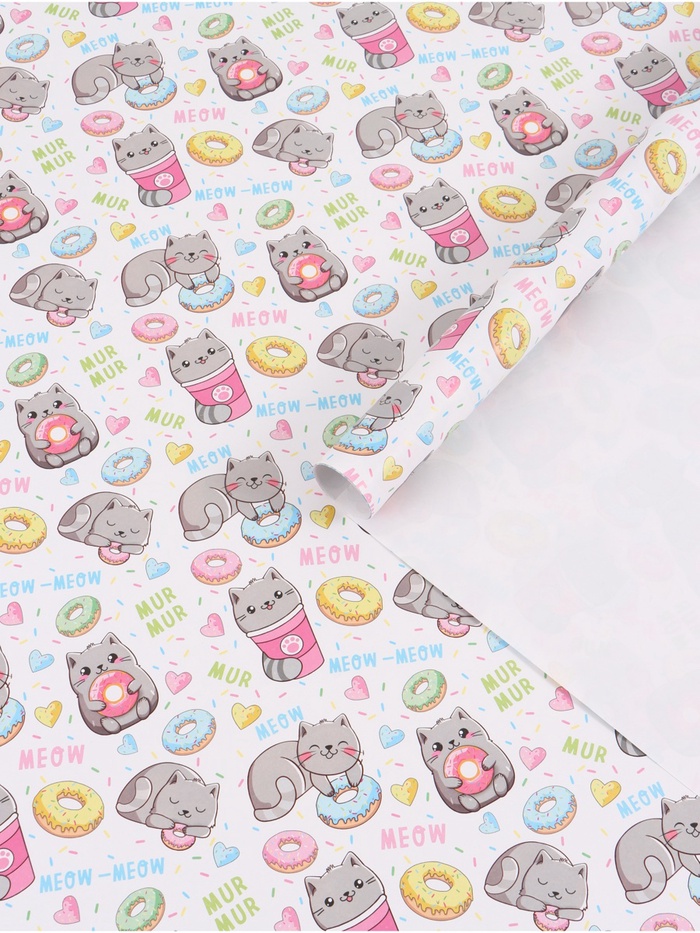 Бумага упаковочная глянцевая «Котики», 70 × 100 см