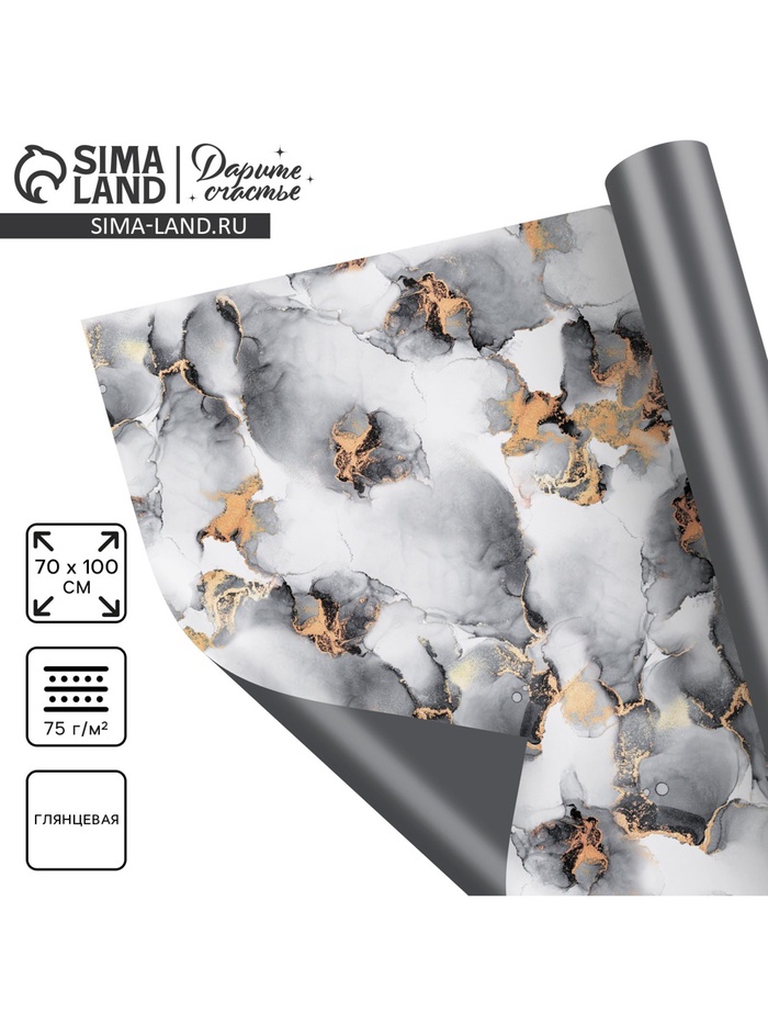 Бумага упаковочная глянцевая двухсторонняя «Мрамор», 70 × 100 см