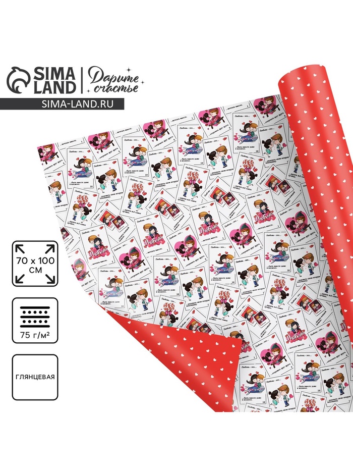 Бумага упаковочная глянцевая двухсторонняя «Любовь это...», 70×100 см
