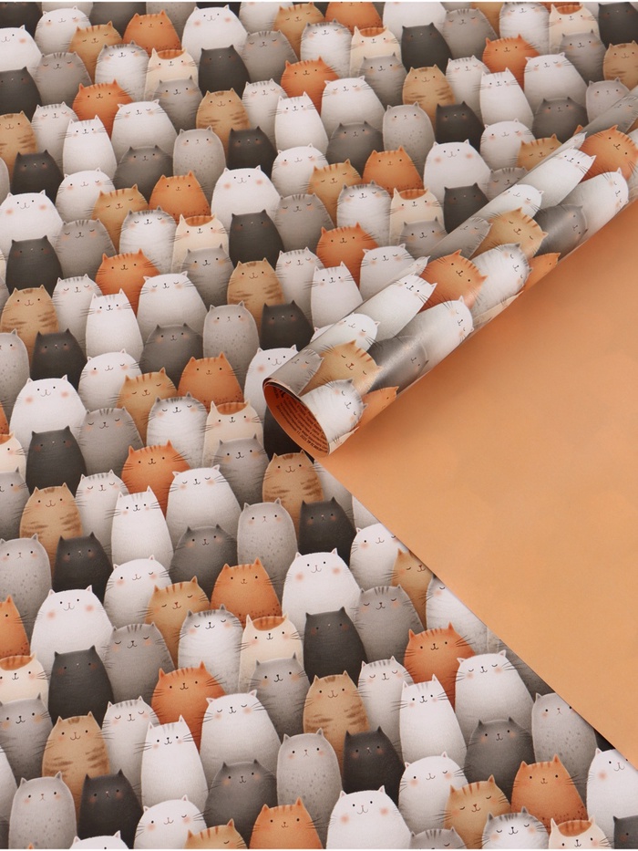 Бумага упаковочная глянцевая двухсторонняя «Коты», 70×100 см