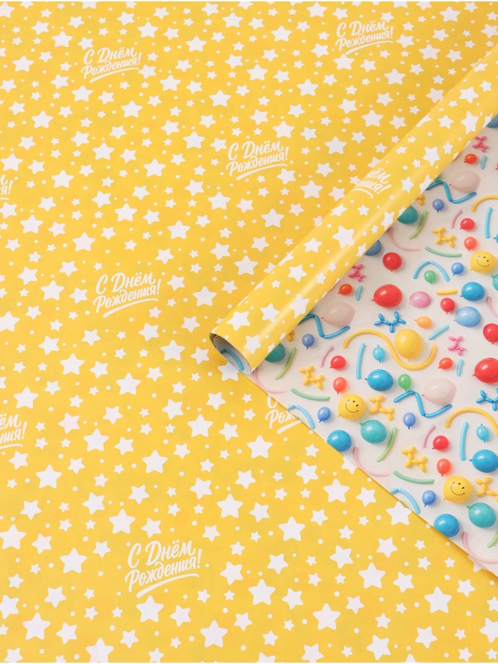 Бумага упаковочная глянцевая двухсторонняя «С днем рождения», 50 х 70 см