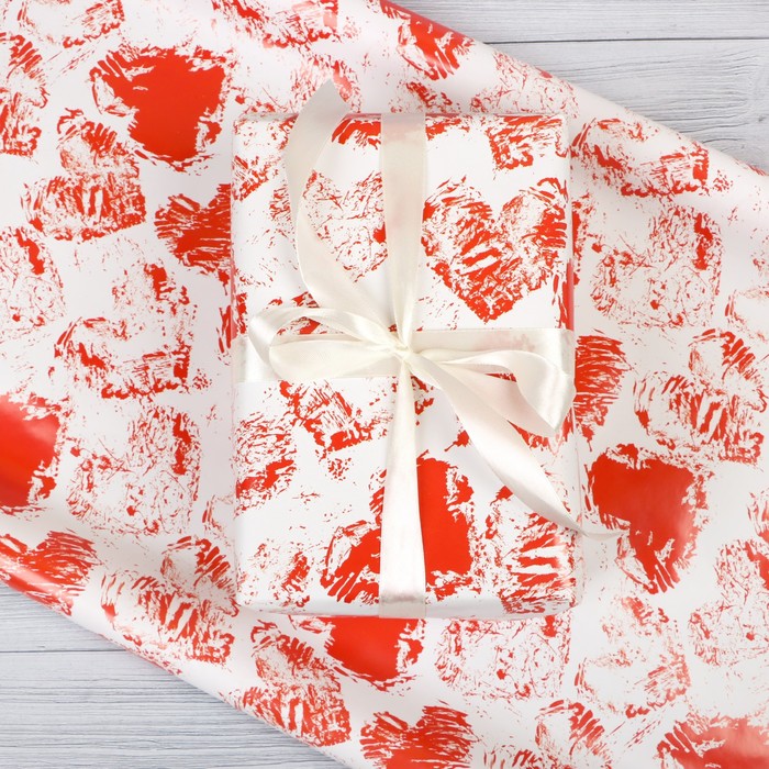 Бумага упаковочная глянцевая «Сердечки» , 100×70 см, 1 шт.
