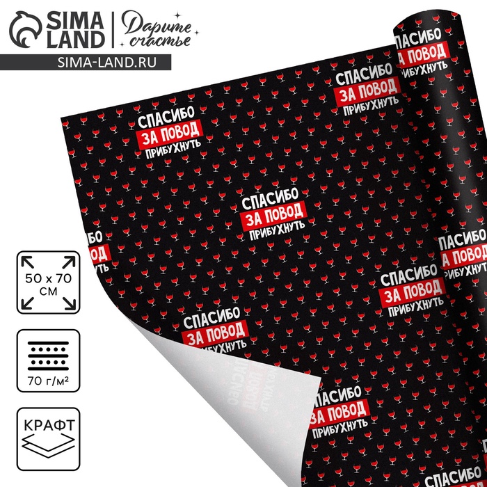 Бумага упаковочная крафтовая белая «Спасибо за повод прибухнуть», 50 x 70 см