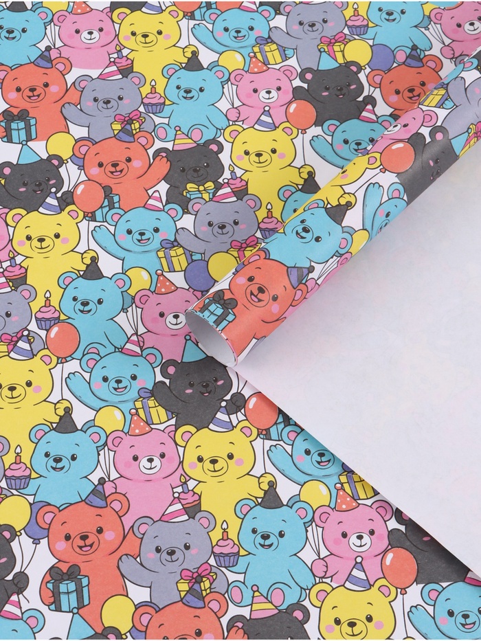 Бумага упаковочная крафтовая «Мишки», 1 лист, 70×100 см