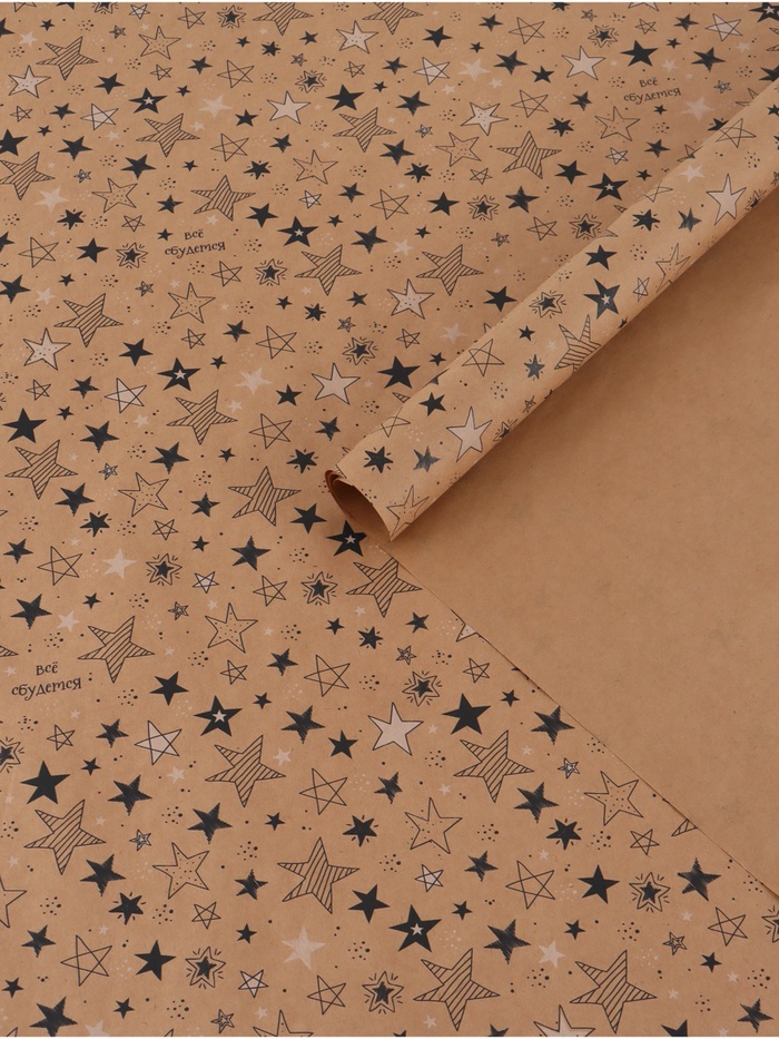 Бумага упаковочная крафтовая «Звёзды», 70 × 100 см