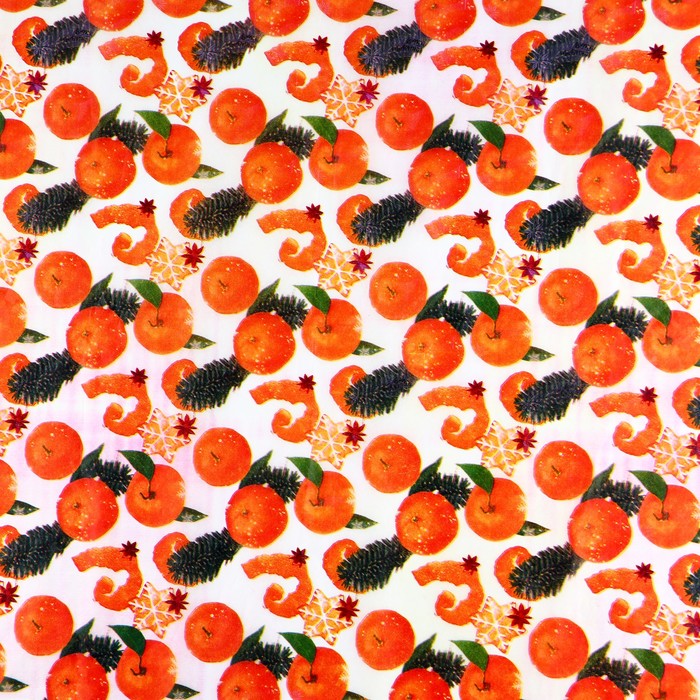 Упаковочная бумага на новый год тишью «Мандарины», 50 х 66 см