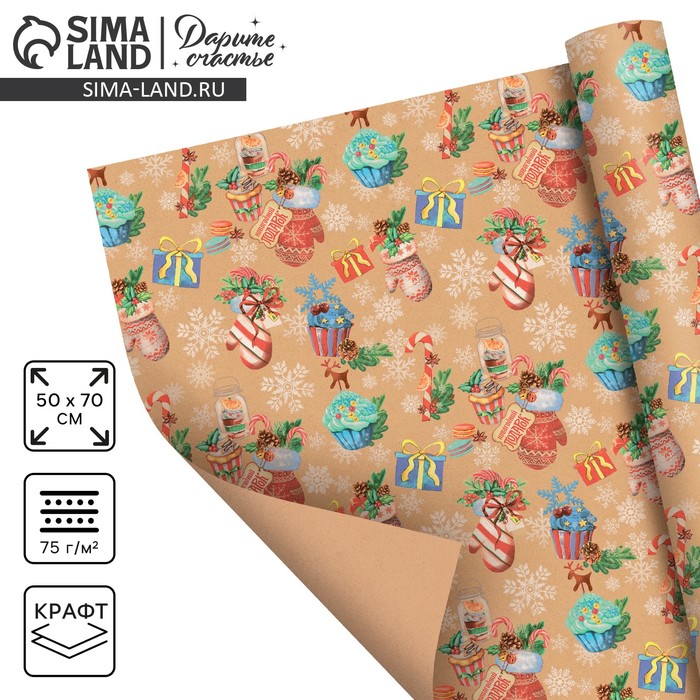 Бумага упаковочная крафтовая «Вкусный праздник», 50 х 70 см