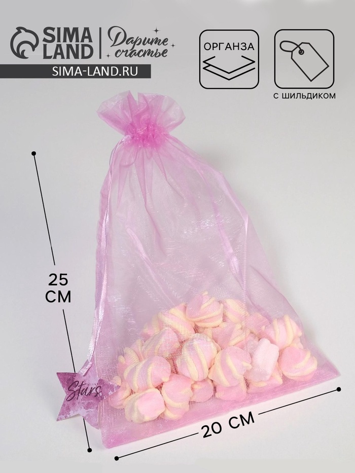 Мешочек подарочный органза фиолетовый «Звезды», с шильдиком, 20 х 30 см +/- 1.5 см