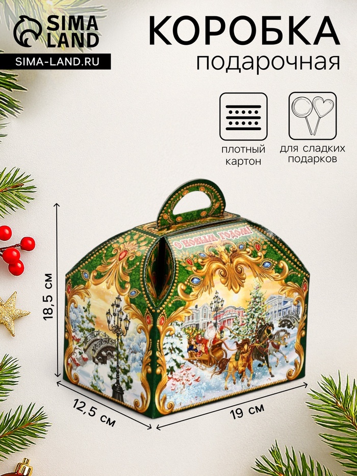 Подарочная новогодняя коробка «ЧУДО ТРОЙКА в золоте» Ларец малый, 18.5×12.5×19 см
