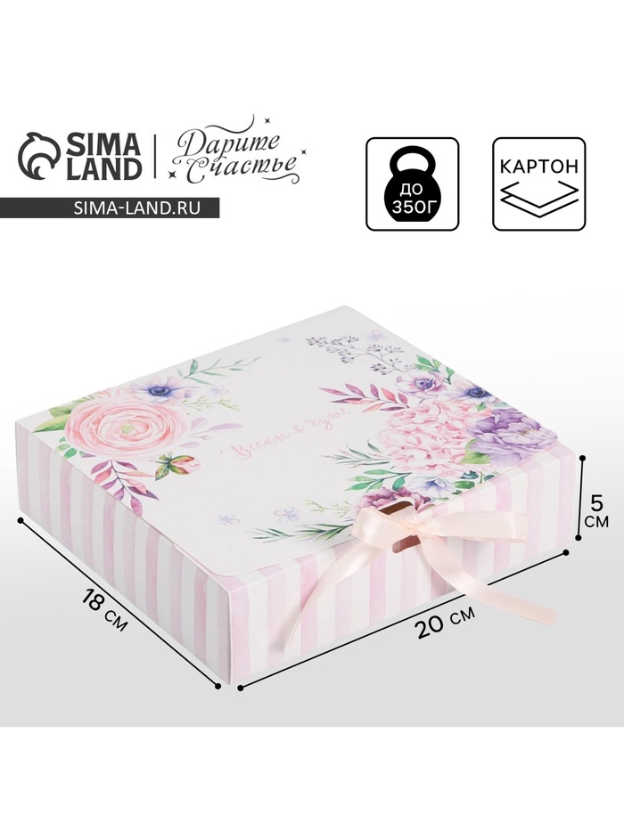 Коробка подарочная, упаковка, «Весны в душе», 20 х 18 х 5 см, БЕЗ ЛЕНТЫ