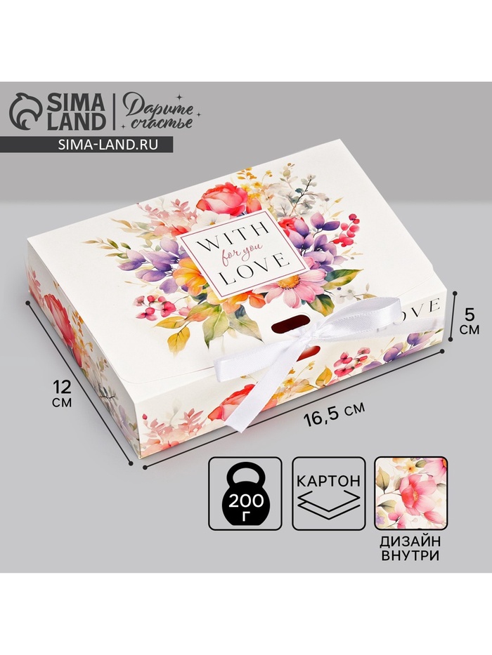 Коробка подарочная складная двухсторонняя, упаковка, «With love», 16.5 х 12 х 5 см