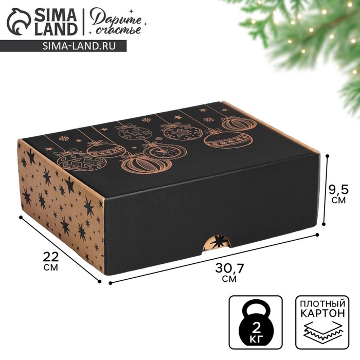 Коробка подарочная новогодняя складная Happy New Year, 30.5×22×9.5 см, Новый год