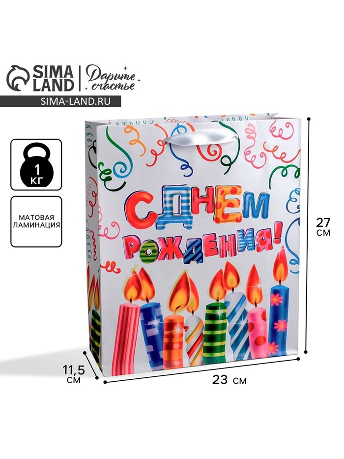 Пакет подарочный ламинированный, упаковка, «С Днём Рождения!», ML 23 х 27 х 11.5 см