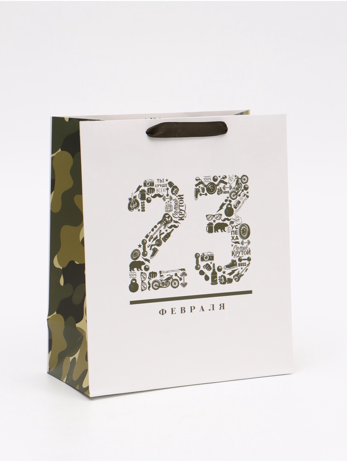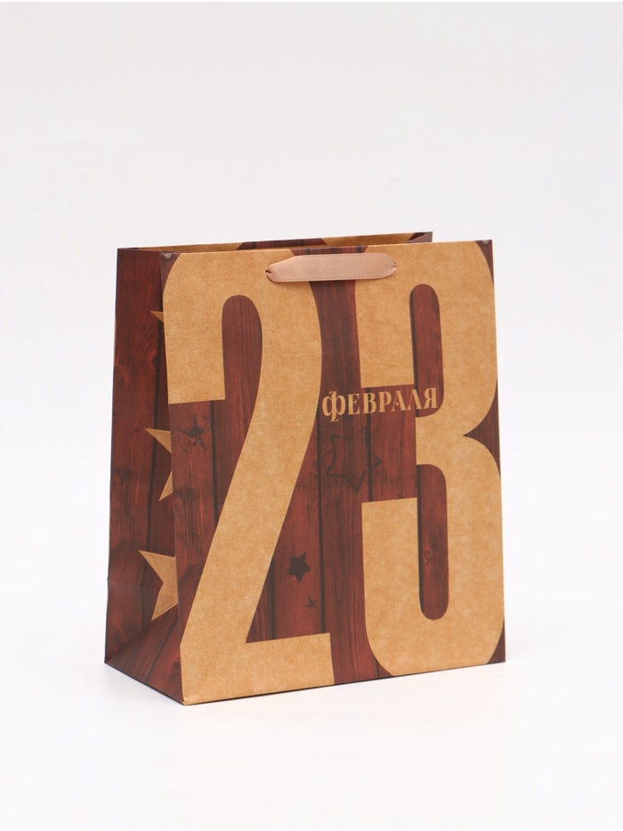 Пакет подарочный крафтовый, упаковка, «23 Февраля», ML 23×27×8 см