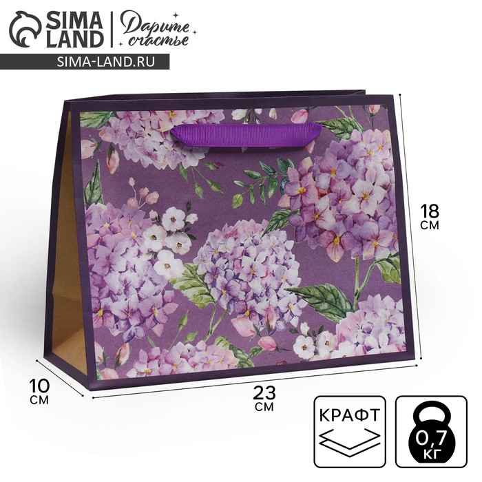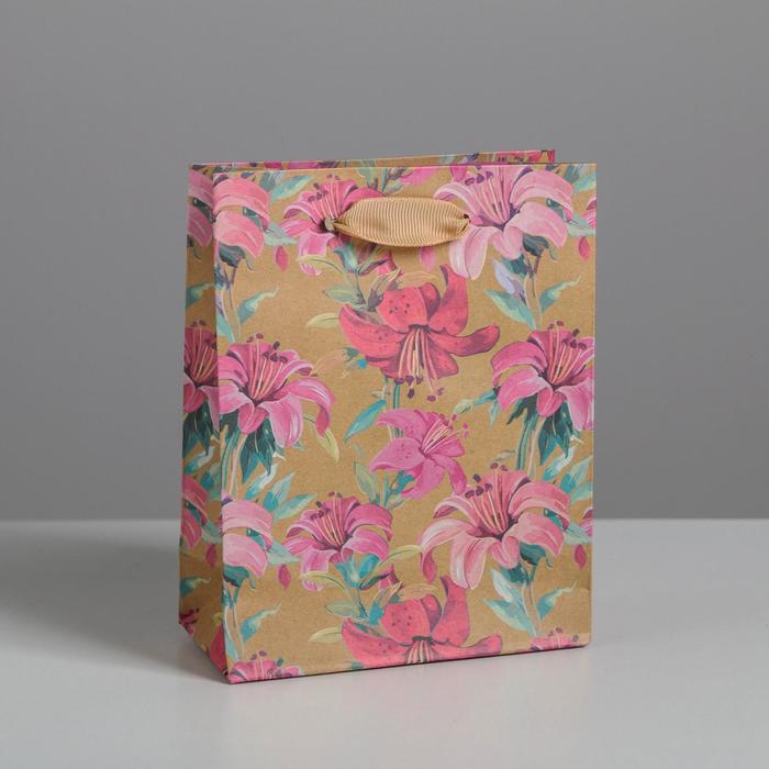 Пакет подарочный крафтовый, упаковка, «Цветы», S 12 х 15 х 5.5 см