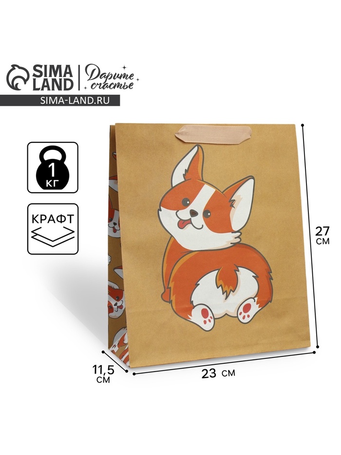 Пакет подарочный крафтовый, упаковка, «Пёсик», ML 23 х 27 х 11.5 см