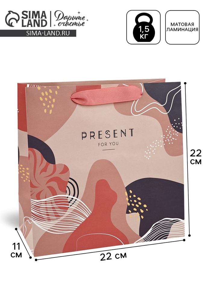 Пакет подарочный ламинированный квадратный, упаковка, Present for you, 22×22×11 см